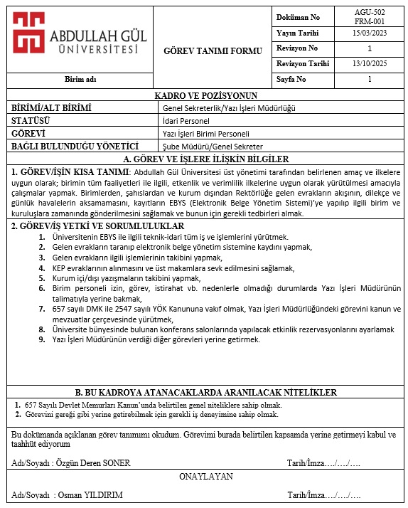 Yazı İşleri Görev Tanımları